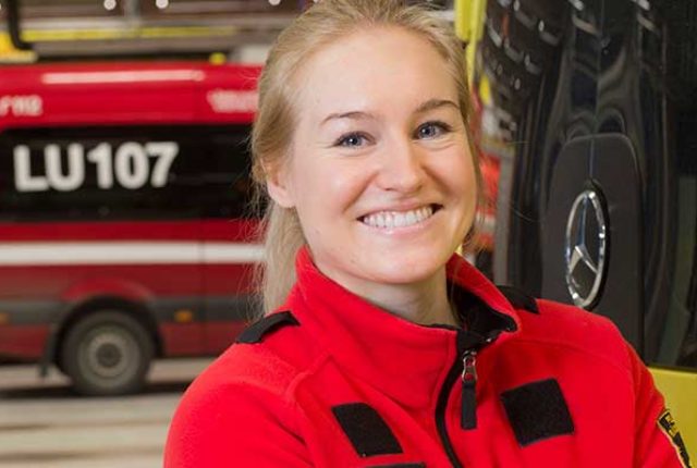 Ensihoitaja Susanna Tuovinen tankkaa töissä pastaa ja jäätelöä palomiesten kanssa.