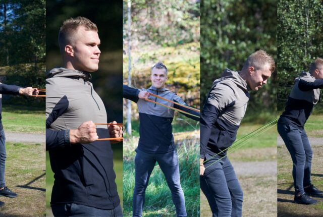 Tämä kuminauhatreeni takaa sen, että kotonakin voi treenata tehokkaasti selkää sekä olkapään takaosan ja koukistajien lihaksia.