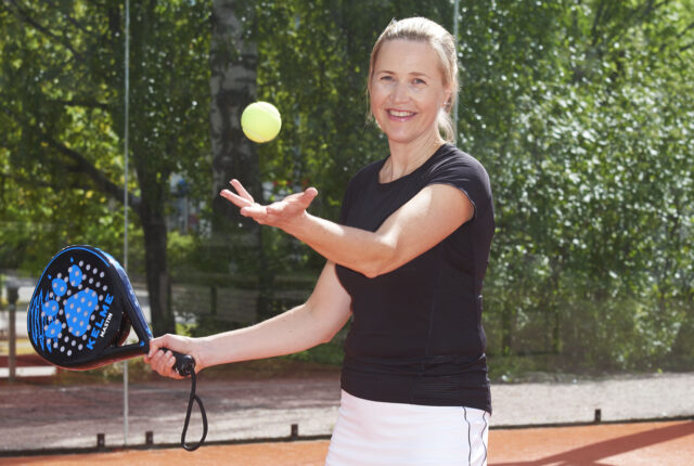 Elina Sohlberg innostui huippusuositusta padelista jo muutama vuosi sitten. Laji kutkuttelee kilpailuviettiä mutta antaa myös mahdollisuuden harrastaa porukalla.