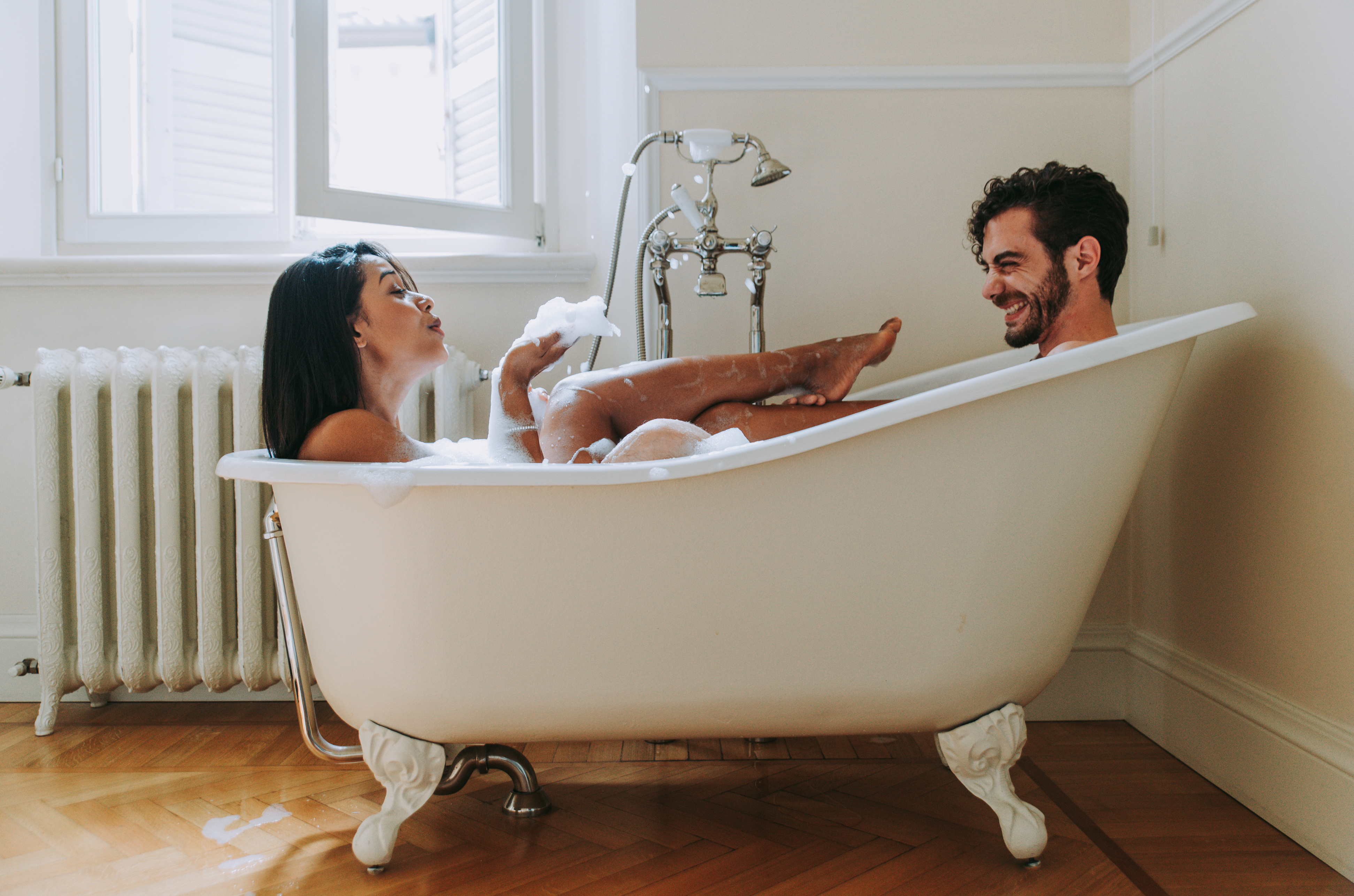 Täyttäkää kylpyamme vaahdolla ja laittakaa viihtyisää musiikkia soimaan. Ei ole helpointa löytää mukavaa paikkaa pienessä ammeessa, mutta takuuvarmasti se on hauskaa.