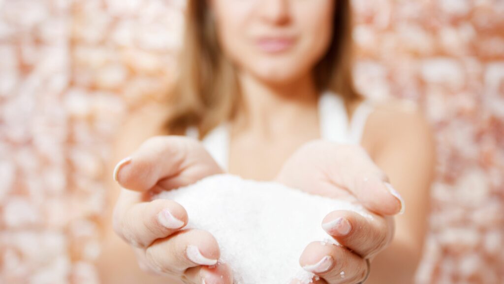Suolahuoneen lattialle näyttää kaatuneen parikymmentä suolasäkkiä, ja suolan päälle on aseteltu mukavat nojatuolit. Istuudun ja rentoudun. Ovi sulkeutuu ja hienojakoista suolapölyä puskeva generaattori hurahtaa käyntiin. Edessä on 40 minuuttia omaa aikaa.
