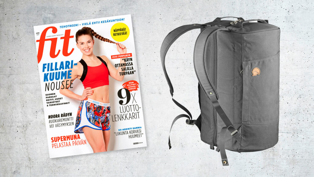 Kerro ideasi ja anna palautetta lehdestä, niin voit voittaa Fjällrävenin Splitback -laukun. Kestävää, vetoketjullista duffelilaukkua voi kantaa myös selässä. Laukussa on mukavat, pehmustetut olkahihnat. Tilavuus 35 litraa. Laukussa on kaksi lokeroa, joissa on vetoketjulliset verkkokangastaskut. Materiaali on kierrätettyä polyesteria ja luomupuuvillaa. Väri harmaa. Palkinnon arvo on 179 e.