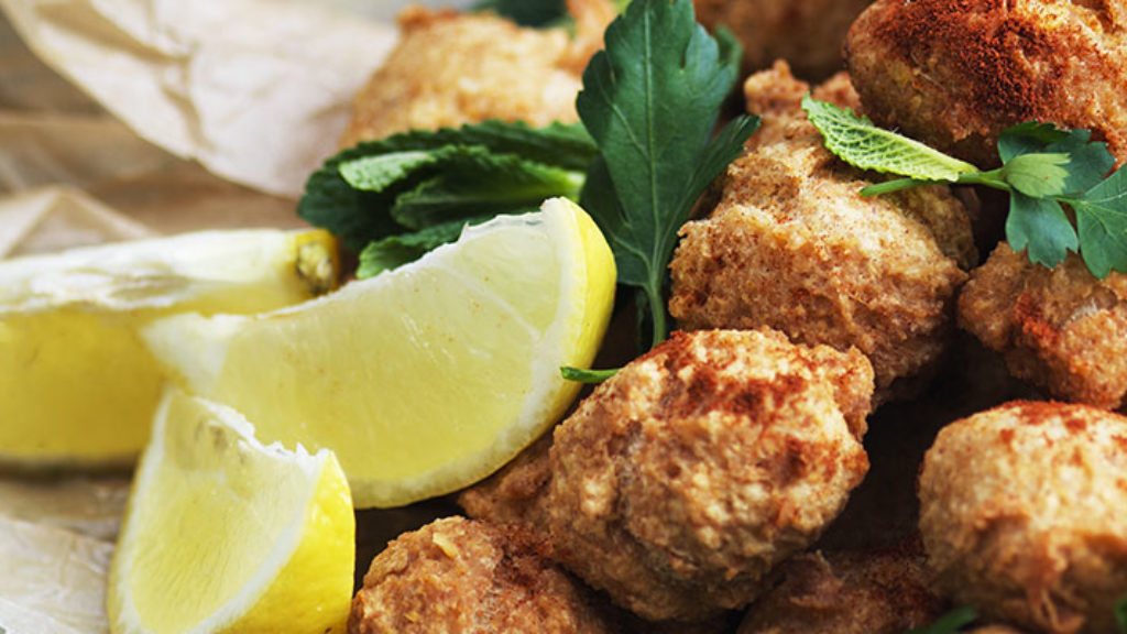 5. Tarjoile: Koristele falafelit persiljan ja mintun lehdillä. Tarjoile yrttikastikkeen, sitruunalohkojen ja salaatin kera.