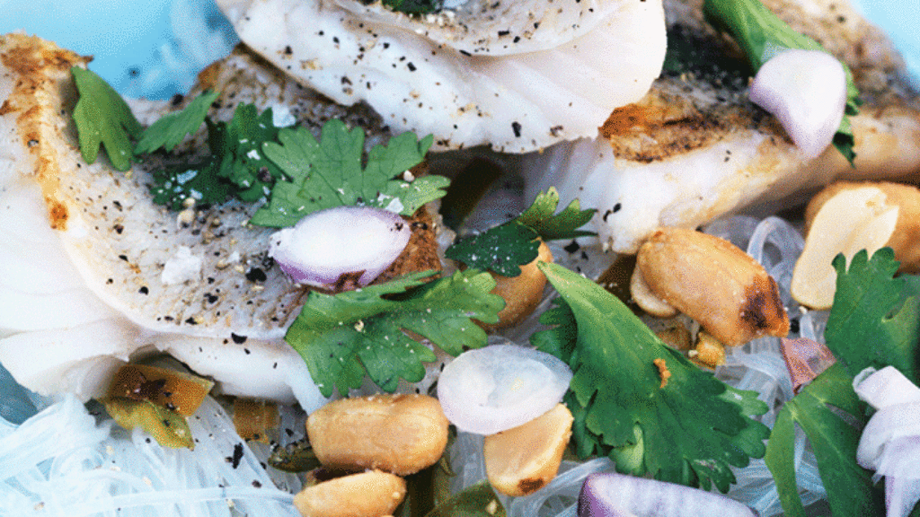 Yhdistä terveellinen kala ja eksoottiset maut. Siika ja kuha maistuvat mahtavalta itämaisessa nuudelisalaatissa.
