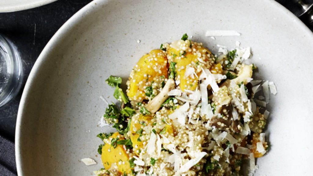 Ei risotto, vaan kvinoatto! Kvinoanmuruista ja kermaisesta myskikurpitsasta syntyy täyteläinen herkkuruoka.
