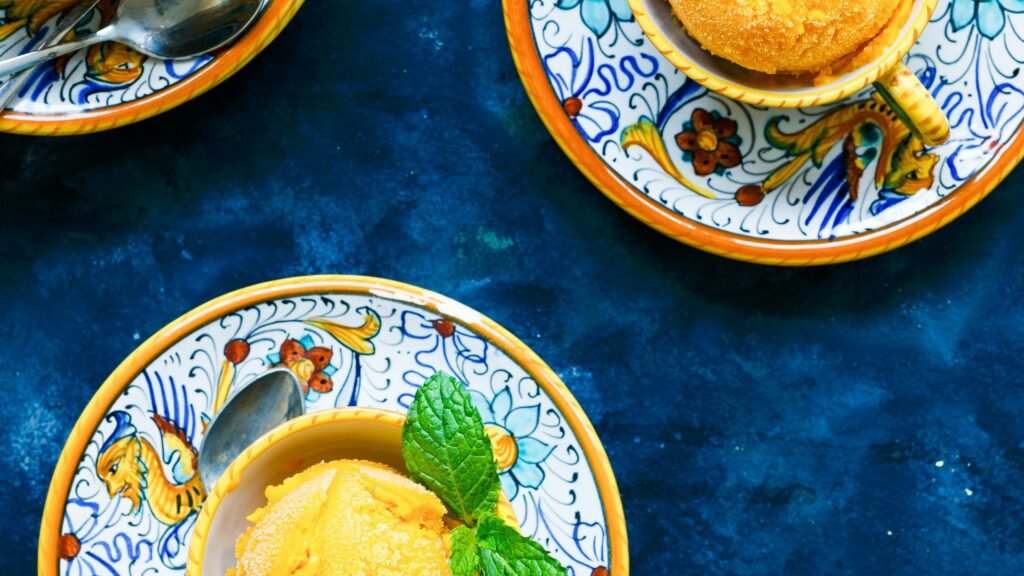 5. Kaada seos jäätelökoneeseen tekeytymään 15–25 minuutiksi. Jos sinulla ei ole jäätelökonetta, tee näin: nosta seos pakkasesta, aja tehosekoittimessa hetki. Vatkaa valkuainen kovaksi vaahdoksi ja sekoita mangososeen kanssa.