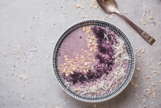 Hedelmäsmoothie, granolaa ja superfoodeja