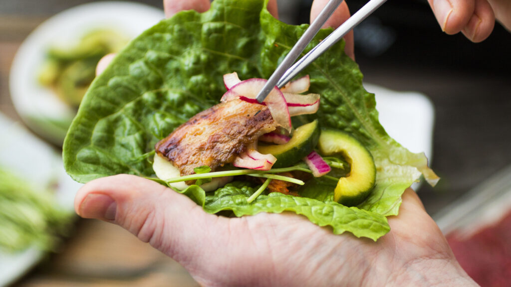 5. Grillaa tai paista kala tai liha ja tarjoile salaatin, kasvisten ja riisin kera.
