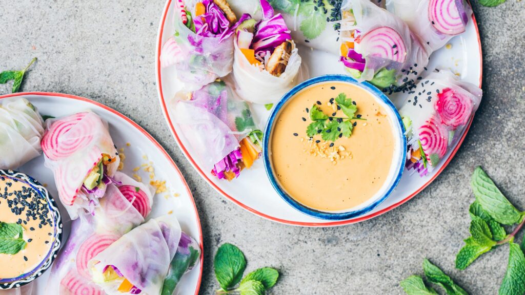 Vietnamilaiset rullat voi täyttää kaikella hyvällä ja terveellisellä: kokeile reseptiä, jossa rullien sisällä on nuudeleita, tofua, raitajuuria, punakaalia ja porkkanaa.