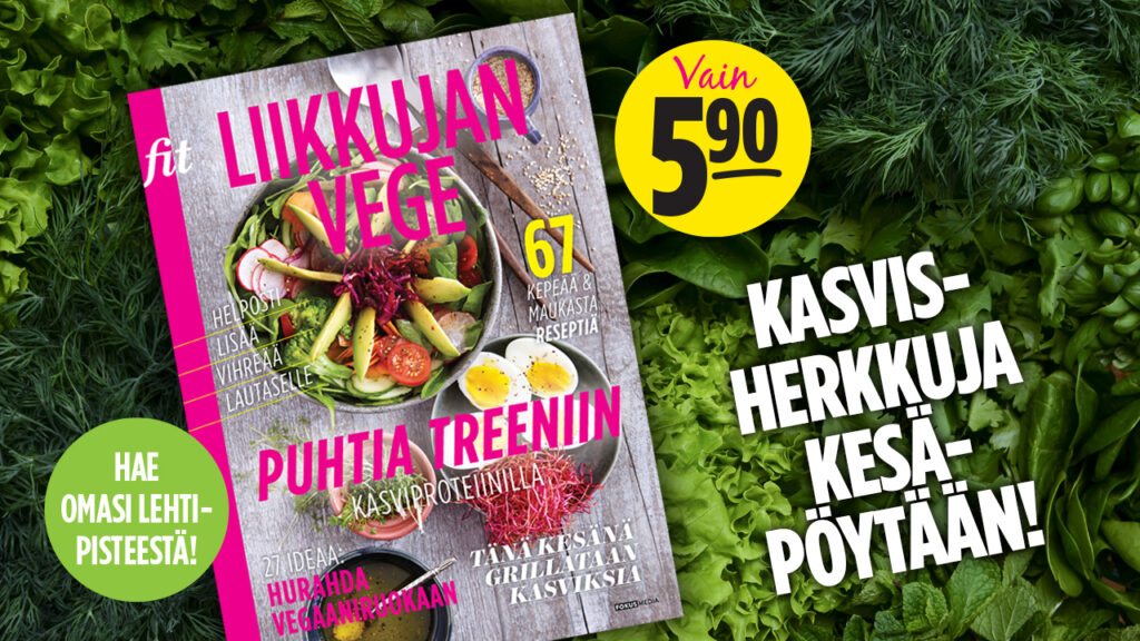 Kevyen ja ekologisen kasvisruoan suosio on kasvussa, ja uusi Fit Liikkujan Vege -lehti auttaakin liikkujia monipuolisen kasvisruokailun suunnittelussa. Lehdestä löytyy tietoa muun muassa kasvisproteiineista ja yksinkertaisia vinkkejä, kuinka lisätä vihanneksia ruokavalioon.