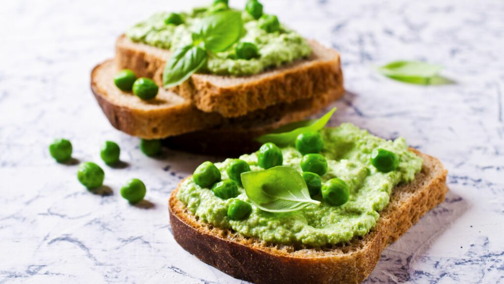 1. Pakasteherneistä valmistettu tahna sopii niin leivän päällä kuin guacamole-dipiksi.