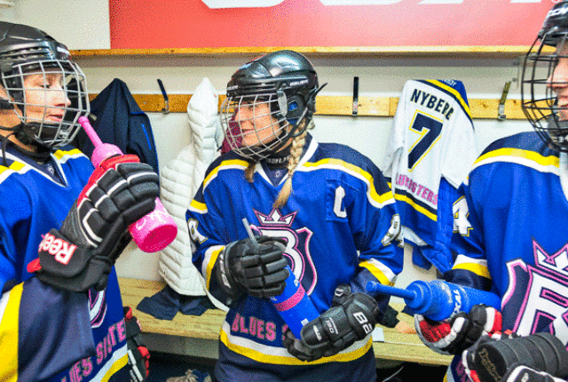 Terhi Nybergille, 41, tiistai on juhlapäivä. Silloin naisporukka pelaa jääkiekkoa – täysillä tietenkin.