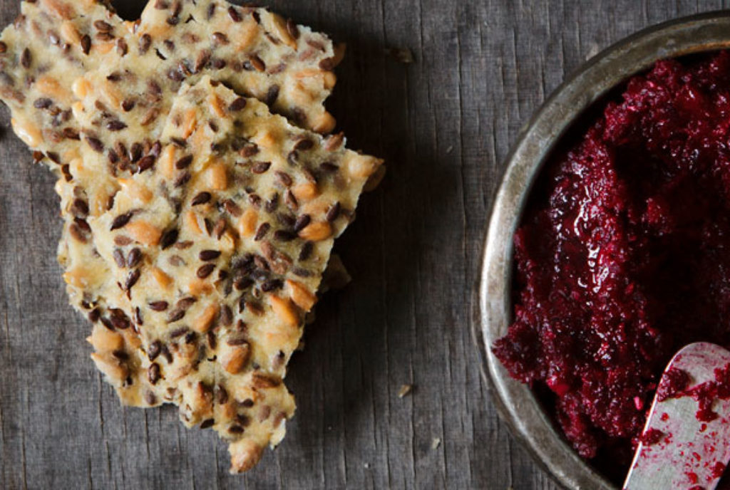 Surauta kypsät kasvikset ja pavut pähkinöiden kanssa tahnaksi. Levitä siemennäkkärille ja nauti.