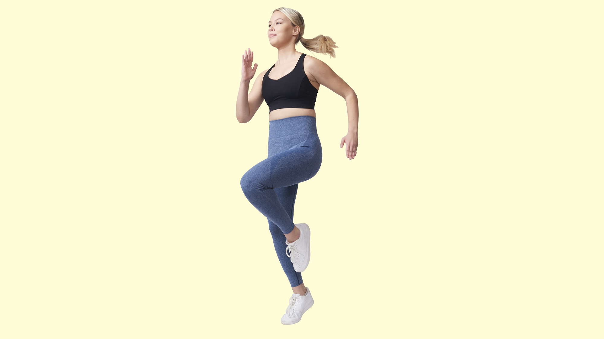 Valmiina-paikoillasi-hep! Juokse paikoillasi niin nopeasti kuin pystyt. Nosta polvia kunnolla ylös ja tikkaa nopeaan tempoon. Jos juokseminen ei onnistu, voit tehdä liikkeen myös atleettisena polvennostomarssina. Jos vauhti tahtoo hidastua, kokeile käsien liikuttamista terävästi ja nopeasti. Näin saat huijattua jalatkin nopeampaan tempoon – ainakin hetkeksi.