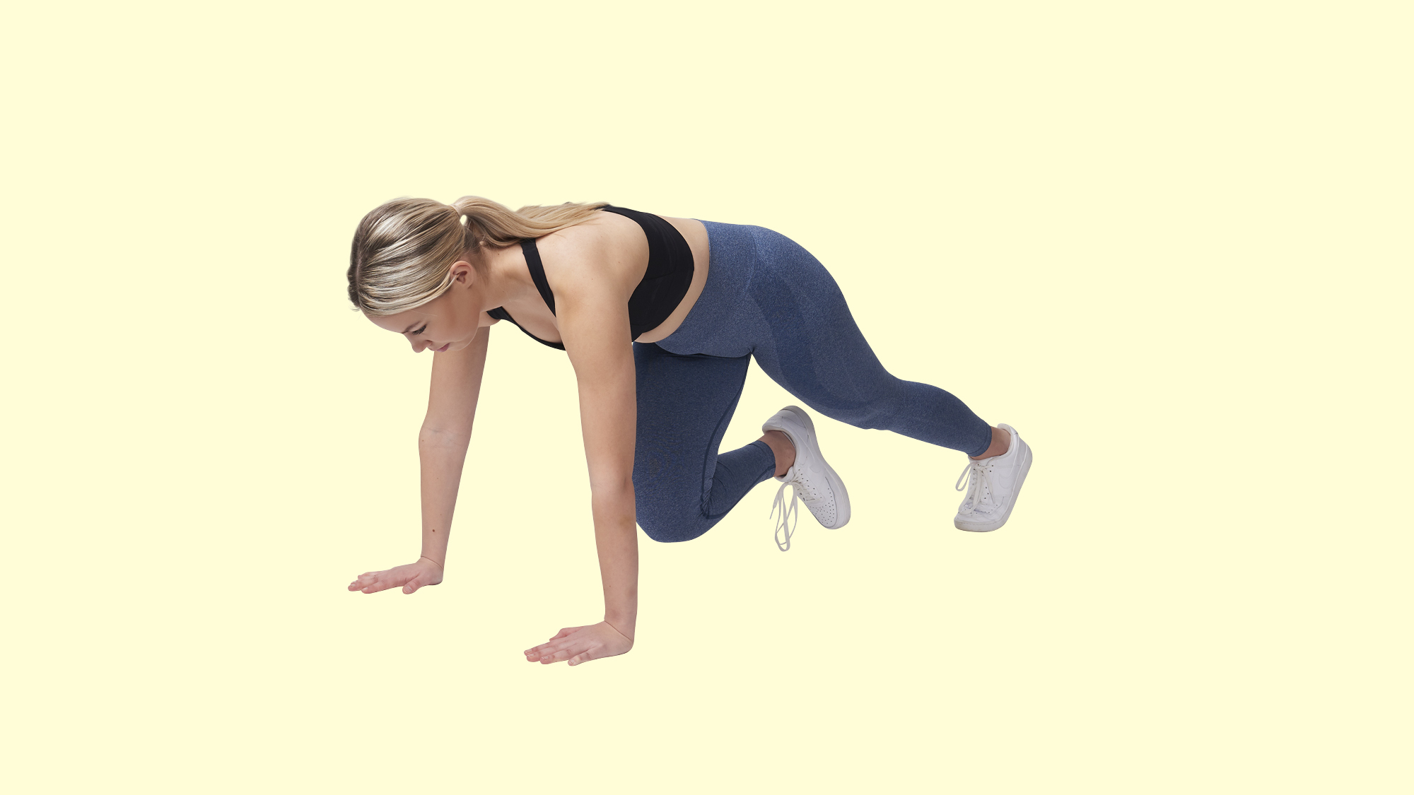 Asetu lankkuun tuomalla kämmenet olkapäiden alle lattiaan. Tuo jalat taakse ja käy joko päkiöiden tai polvien varaan. Tee ojentajapunnerrus. Ala-asennossa tuo rinta lähelle lattiaa ja ohjaa kyynärpäät kiinni kylkiin. Työnnä itsesi ylös ja vedä polvet vuorotellen vastakkaisiin kyynärpäihin. Tee sitten uusi punnerrus ja toista myös vuorikiipeilijä vetämällä polvet jälleen kyynärpäihin. Pidä selkä koko ajan suorana ja lantio samassa linjassa selkärangan kanssa. Liikettä helpottaa, jos polvet tuo lattiaan. Myös vuorikiipeilijän voi hyvin tehdä niin, että toinen polvi on tukevasti maassa.