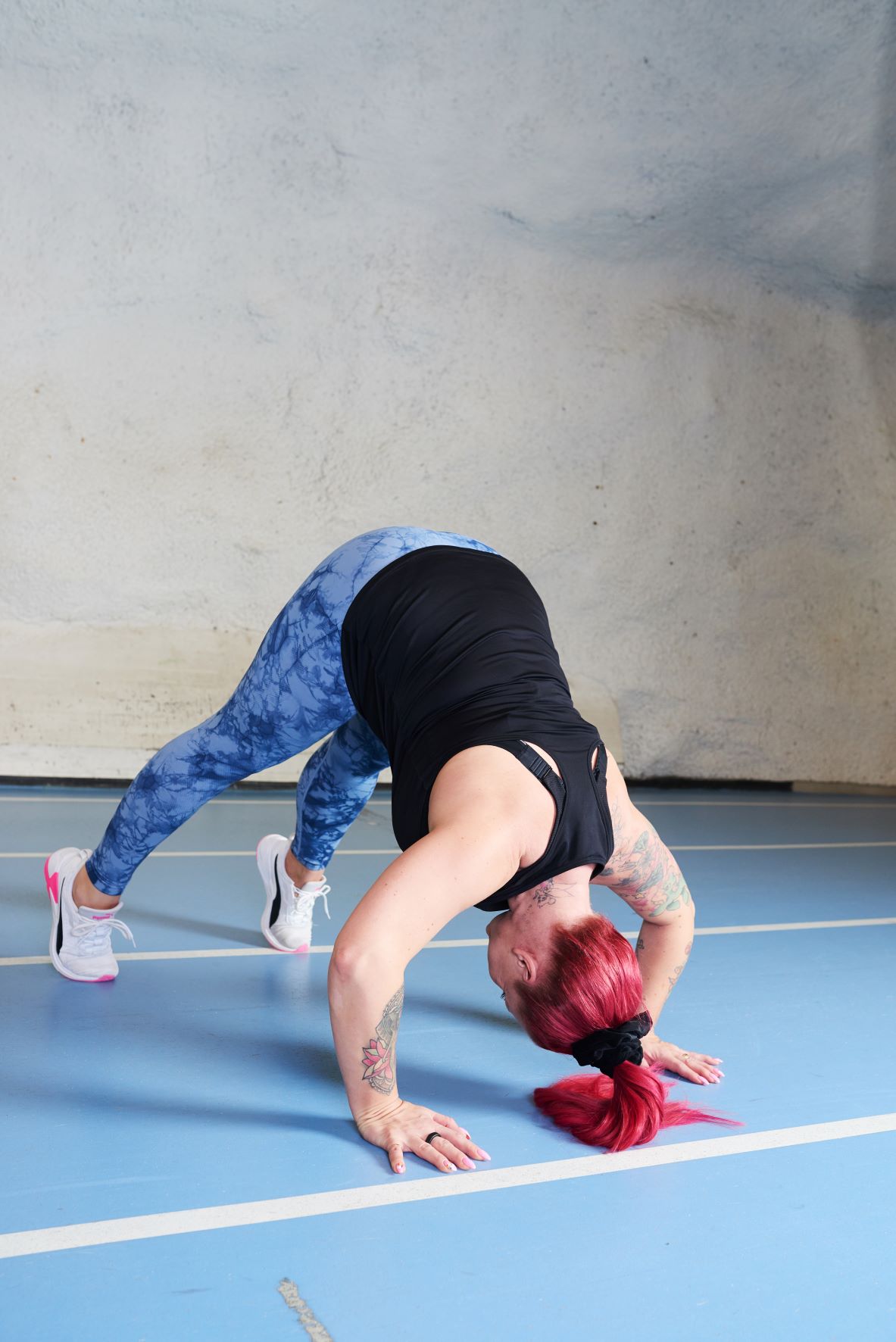 Aseta kädet ja jalat maahan niin, että takamus kurkottaa kohti taivasta. Hilaa painopiste käsien