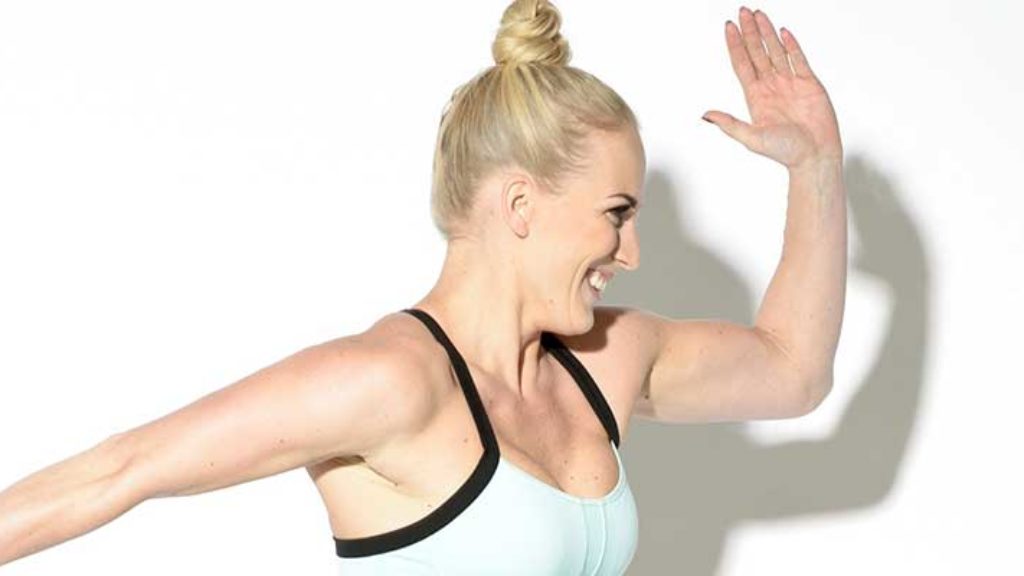 - Vie kädet taakse ja nosta jalkoja aavistus ylöspäin. Aktivoi keskivartalo tiukaksi.