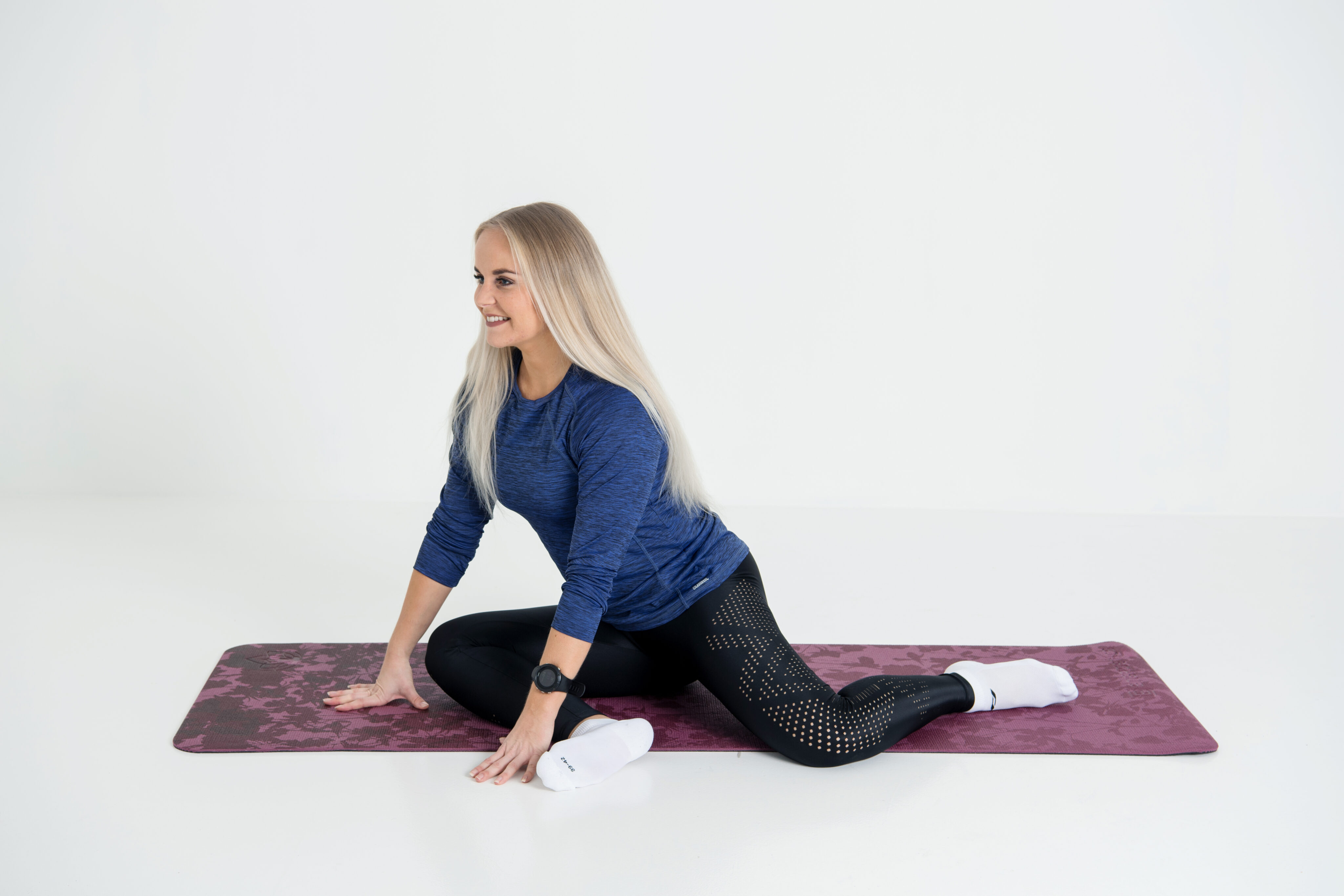 Malli: Anniina Pohjola/Wellnessmalli-koulutus. Treenivaatteet: Leggou.