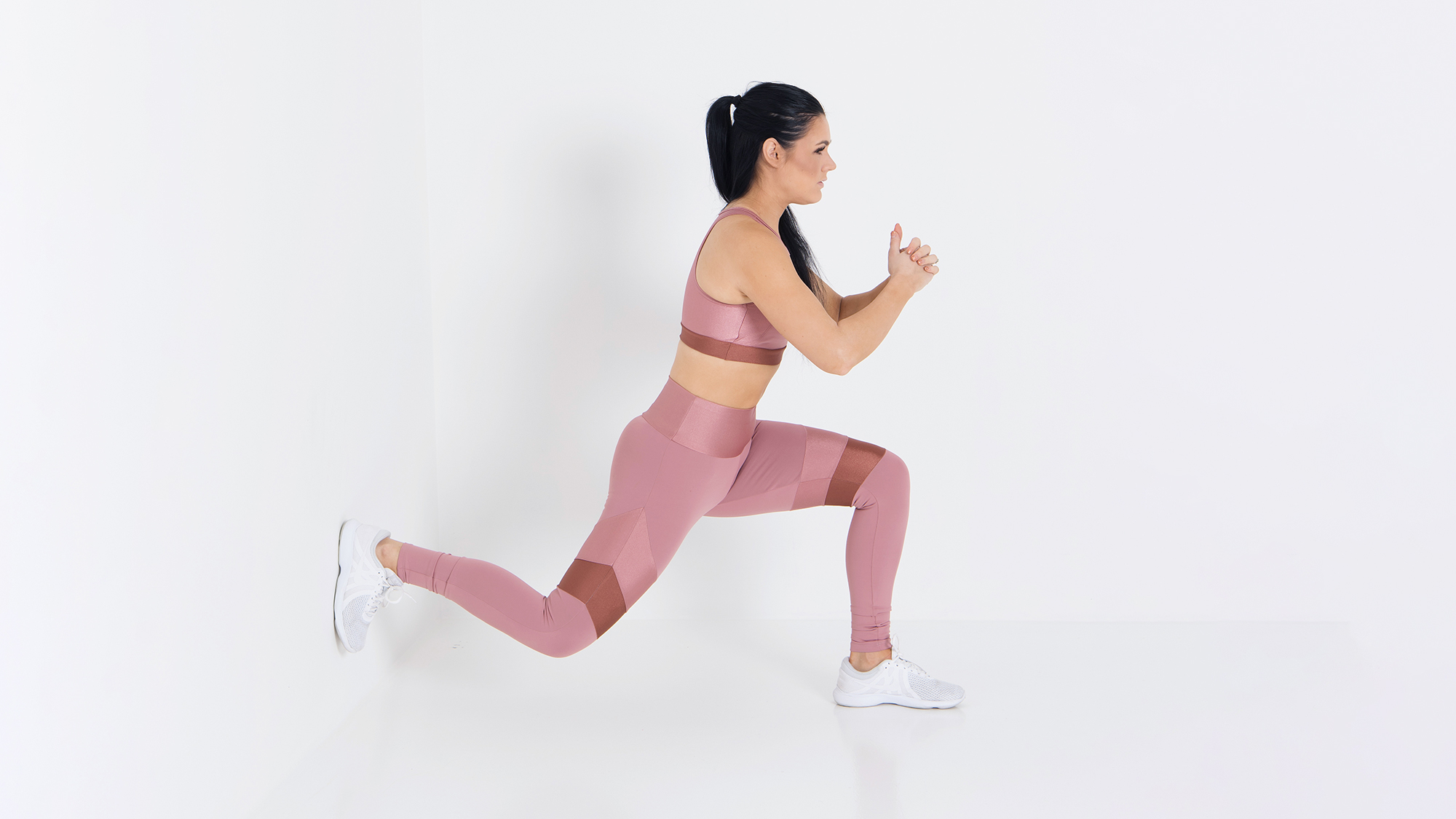 Nosta toinen jalka seinää vasten ja vie toinen jalka lattiaan kauas seinästä. Jännitä vatsalihaksia ja hae hyvä ryhti pyöräyttämällä hartiat taakse. Tee askelkyykky niin, että kyykkäät lattiassa olevalla jalalla mahdollisimman alas. Paina samalla toista jalkaa seinään. Ohjaa lattiassa olevan jalan polvi samaan suuntaan varpaiden kanssa.