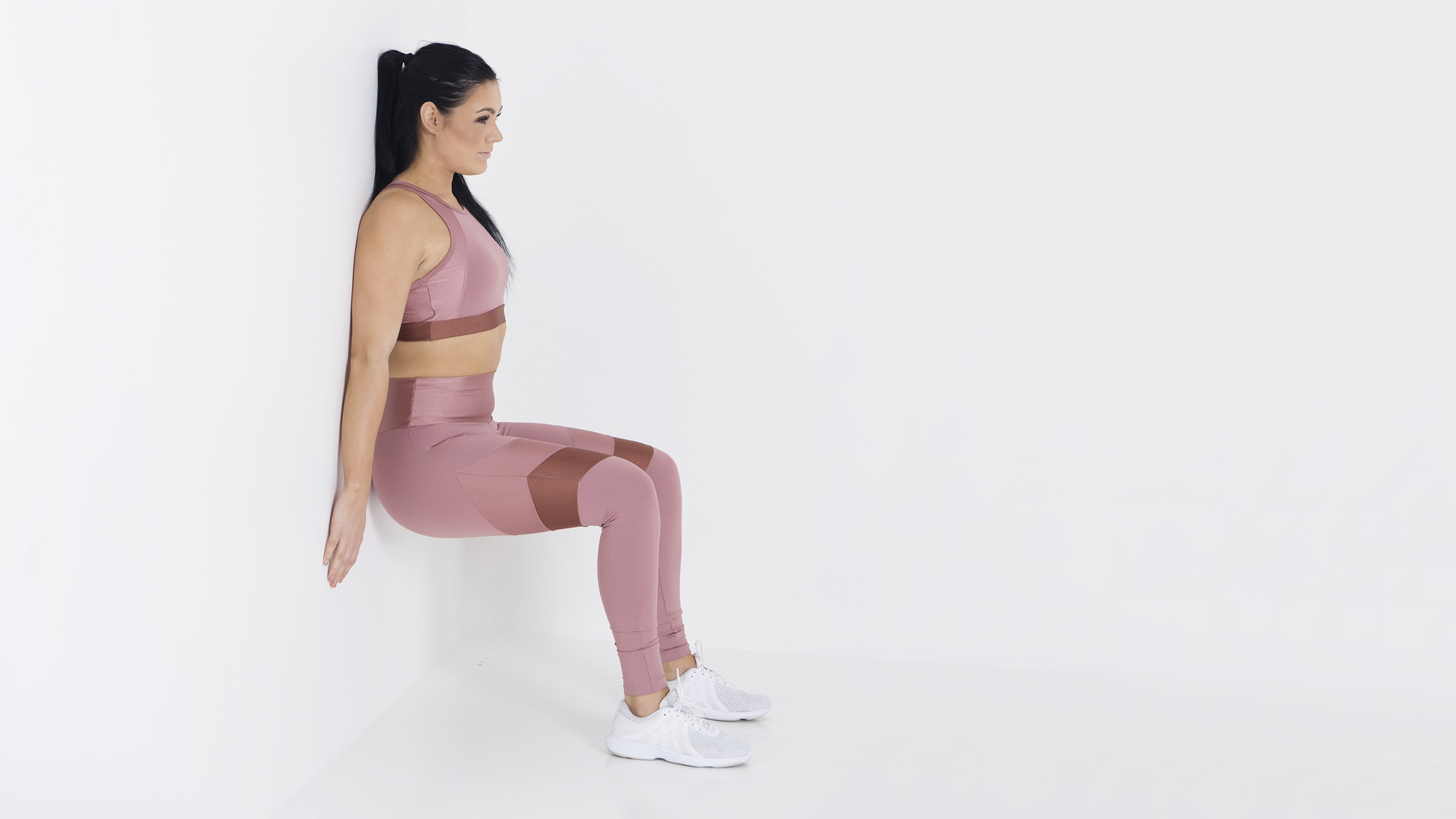 Kyykkypito haastaa alavartalon lihakset. Kun pidät alaselän koko ajan tiukasti lähellä seinää, myös keskivartalo saa kyytiä.