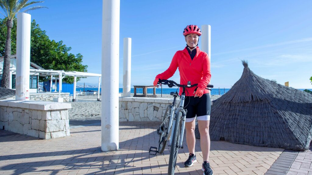Fuengirolassa entisestä kohtuukuntoilijasta on tullut myös tavoitteellinen ja intohimoinen liikkuja. Ensin Laura palkkasi personal trainerin, jonka myötä treenaaminen muuttui toiminnalliseksi. Sitten rinnalle tulivat vaellus, pyöräily ja lattaritanssit. Vanhan sairauden vuoksi jäykistyvää selkärankaa hän hoitaa liikkuvuusharjoitteilla.