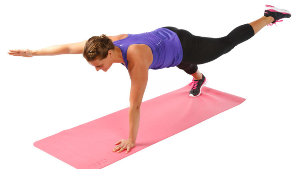 - Samalla nosta vastakkainen jalka suorana kohti kattoa yläkehon kanssa samalle tasolle. Kurota käsillä kohti nousevaa jalkaa.