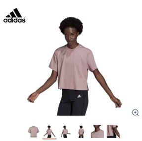 Adidaksen vaaleanpunainen, 93-prosenttisesti kierrätyspolyesteristä valmistettu väljä treenipaita hylkii kosteutta ja huolehtii, että urheillessa iho tuntuu kuivalta ja viileältä.