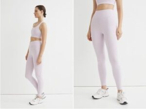 H&M:n korkeavyötäröiset ja muotoilevat treenitrikoot on tehty 79-prosenttisesti kierrätetystä teknisestä materiaalista, joka pitää kuivana ja vilpoisana treenatessa. H&M panostaa housujen ulkonäköön muotoilevilla saumoilla sekä trendikkäällä vaaleanliilalla värillä. Housut on mahdollista saada myös mustana, ja kokovaihtoehtoina ovat XS–XL.