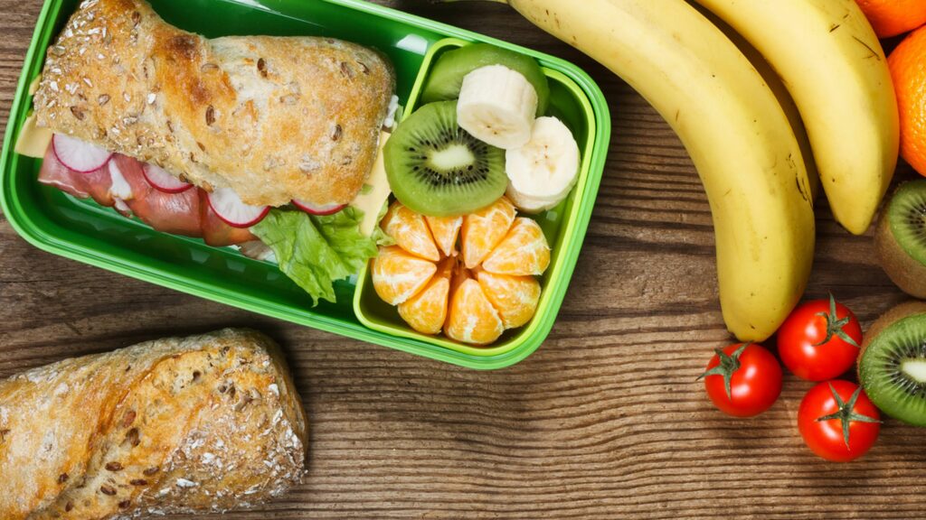 Jos aamupalan ja lounaan väliin jää yli neljä tuntia, on hyvä syödä pieni välipala, kuten banaani tai pieni kourallinen pähkinöitä. Lounaalla puolet lautasesta kannattaa täyttää värikkäällä salaatilla, jonka päälle voi laittaa ruokalusikallisen öljypohjaista salaatinkastiketta. Lisäksi kämmenellinen proteiineja, kuten kanaa tai kalaa, sekä kaksi kämmenellistä hiilihydraatteja, kuten täysjyväpastaa tai -riisiä.