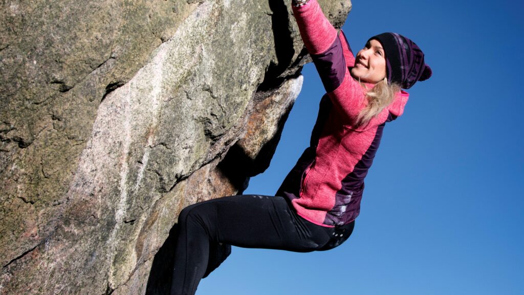 Fiilistelen kiipeillessäni kaikkea: huikeita maisemia, fyysisiä haasteita ja sitä tunnetta, että pääsen toteuttamaan itseäni. Jos en pääse hetkeen kiipeämään, minusta tulee levoton.